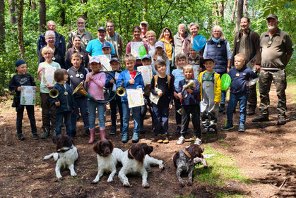 Eine spannende Ferienpass-Aktion führte am Mittwoch Vormittag, dem 9. Juli, 17 neugierige Kinder in den Lichtenhorster Wald. Organisiert vom Heimatverein Lichtenhorst in Zusammenarbeit mit Jagdpächter Fritz Lackner, wartete auf die kleinen Naturfreunde eine lehrreiche und unterhaltsame Waldwanderung mit mehreren Mitmach-Stationen. Unterstützt von weiteren Jägern – und natürlich durften auch deren vierbeinige Jagdbegleiter nicht fehlen. Große Begeisterung bei den Mädchen und Jungen. Zum Abschluss gab es dann noch eine besondere Überraschung: Jedes Kind erhielt eine Urkunde, die es offiziell als Junior Ranger auszeichnet