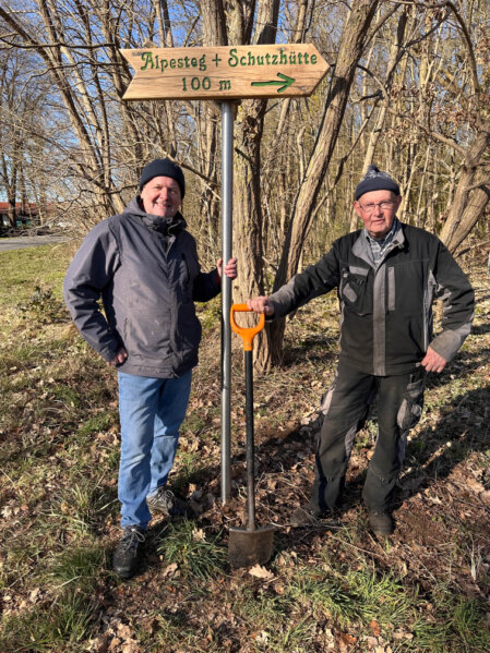 Neues Hinweisschild für Alpesteg und Schutzhütte in Lichtenhorst aufgestellt