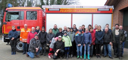 Erfolgreich Lichtenhorster Strassen von Müll befreit. Am 6.Lichtenhorster Umwelttag sammelten wieder viele Lichtenhorster Unrat und Müll entlang den Strassen und Gräben. Unter dem Motto "Sauber ist schöner-wir räumen auf-ich bin dabei" waren die Freiwillige Feuerwehr, der Heimatverein, Spielmannszug, Schützenverein und die Landfrauen wieder als Lichtenhorster Vereine dabei. Die Gemeinde Steimbke spendierte allen Helfer im Anschluss als Dank Getränke und Bockwurst.