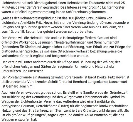 Heimatverein Lichtenhorst gegründet